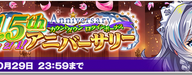 2021年10月30日から行われる『1.5周年記念キャンペーン』についての情報をまとめておきます。 おおまかなスケジュー …