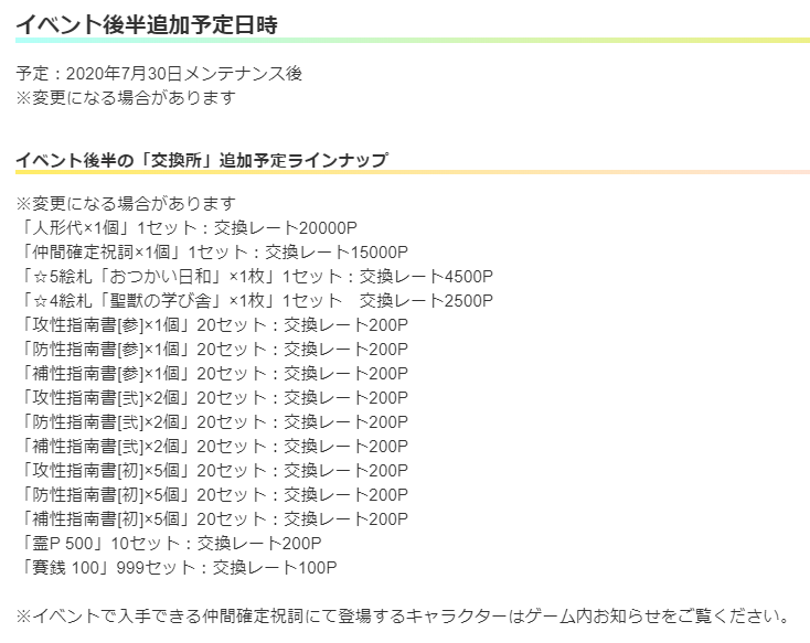 前のイベの白蓮とメディスンの服の実装はイベ始まって1週間後だったから今回も29日に実装かと