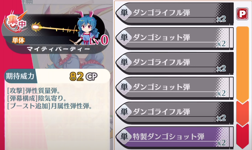 美鈴や紫のように、根本的に『上方修正』されない事には如何ともし難い性能ですが、果たしてそのようなテコ入れをはあるものか…。