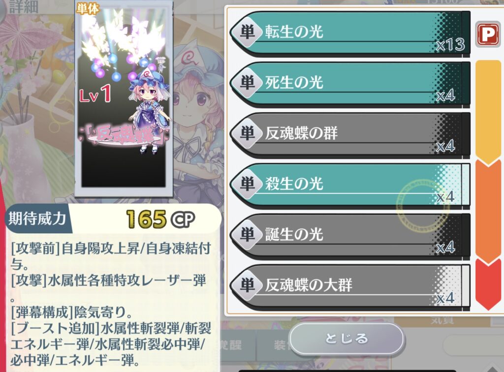 『初手2ブースト・命中率100%・陰攻8段階アップ・速力9段階アップ』に加えて、最重要な1バレット目の『妖怪・妖精・霊・アンデッド・剣士・格闘家・魔法使い』という超高範囲な特攻弾のCRI倍率まで引き上がったので、本当に見違える程の強化です。