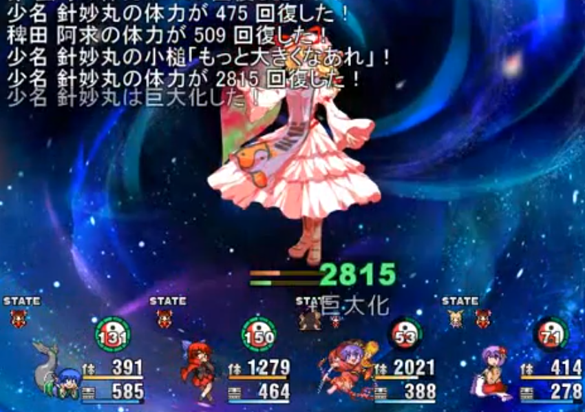 スペル1・小槌『大きくなあれ』(全体攻撃)